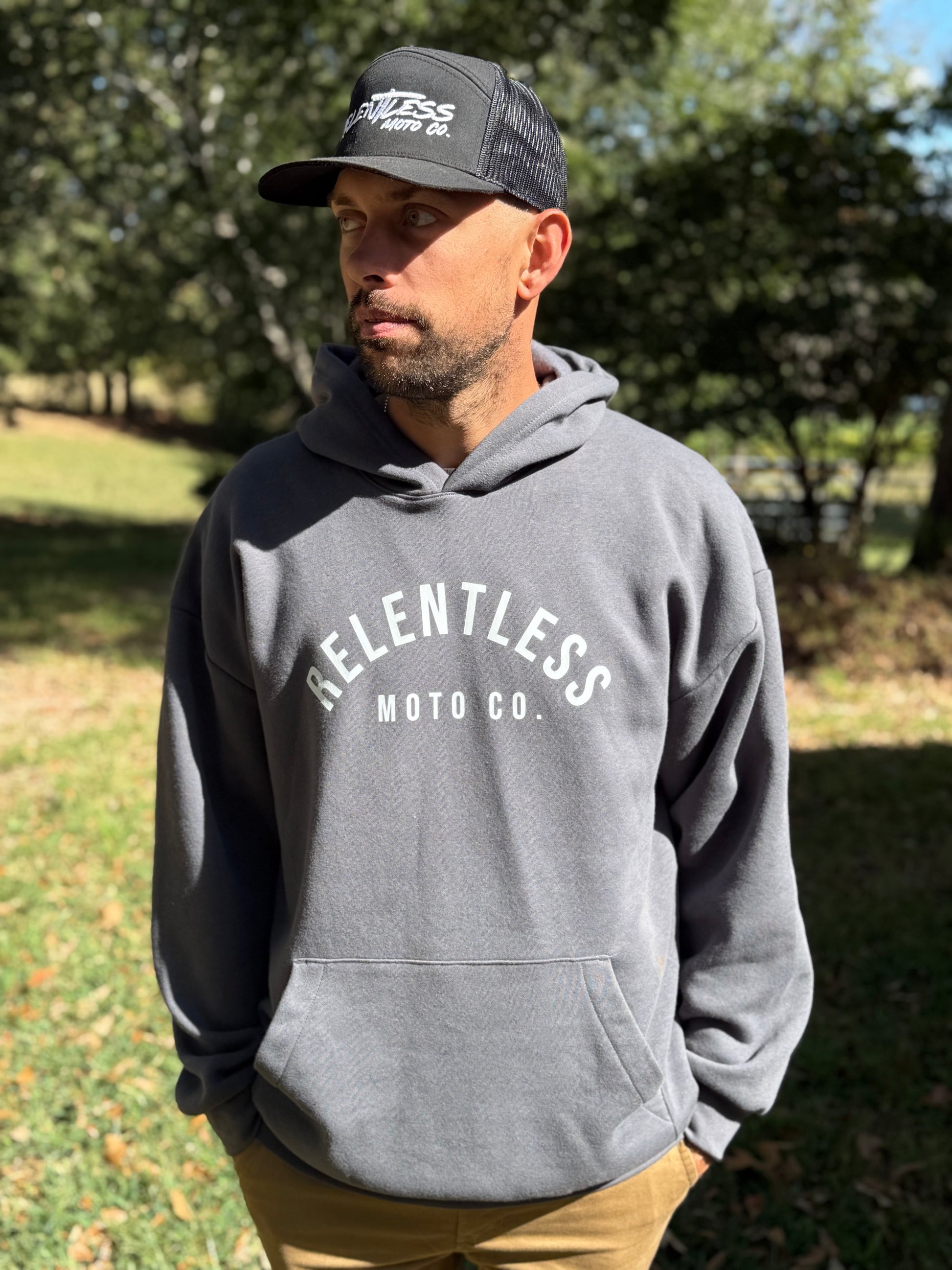 This stylish Hoodie features our Radial Relentless Moto Co. logo across the back and a bold arched logo across the chest. Crafted from high-quality, breathable fabric, this hoodie is as comfortable as it is eye-catching.